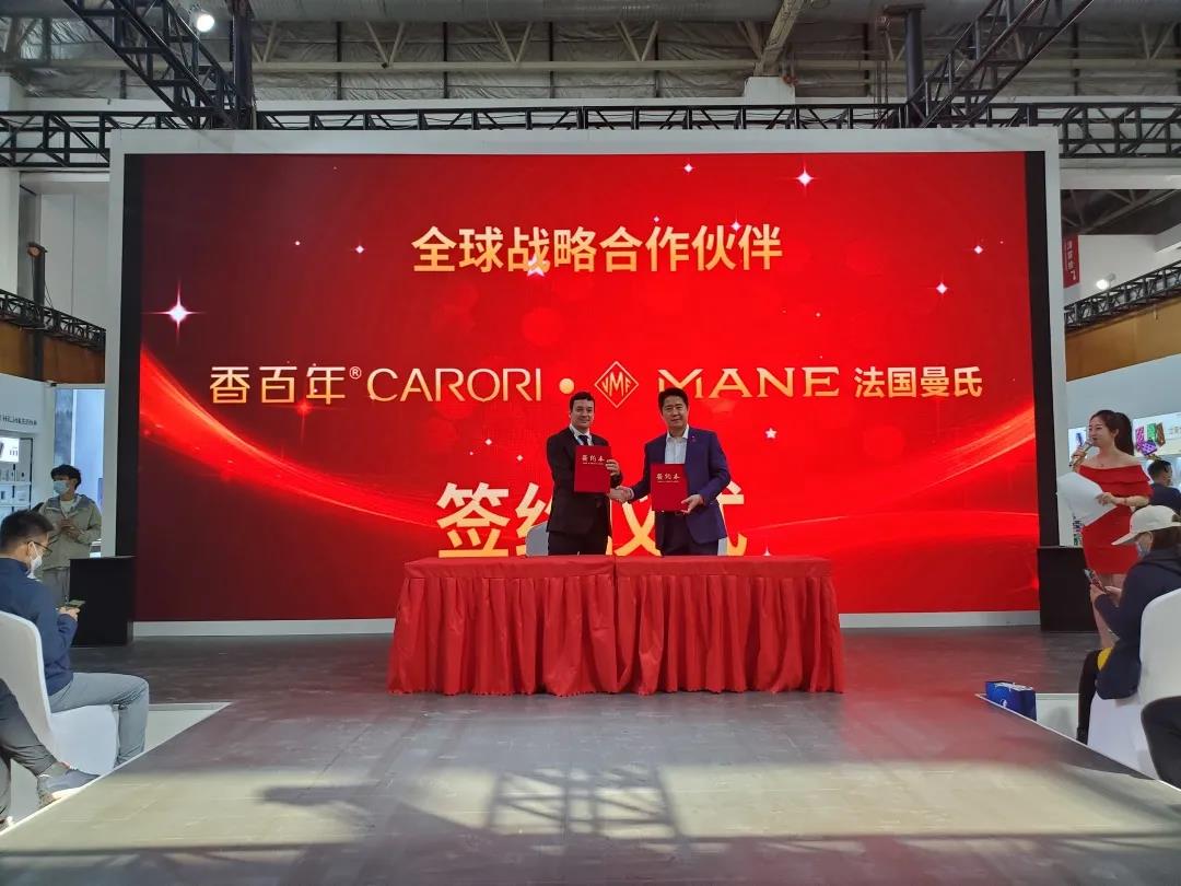 在展會期間,香百年全球戰略合作伙伴香百年CARORI ? MANE法國曼氏簽約儀式圓滿成功!有了曼氏強大的后盾支撐,香百年的香精品質一直以來深受市場好評。